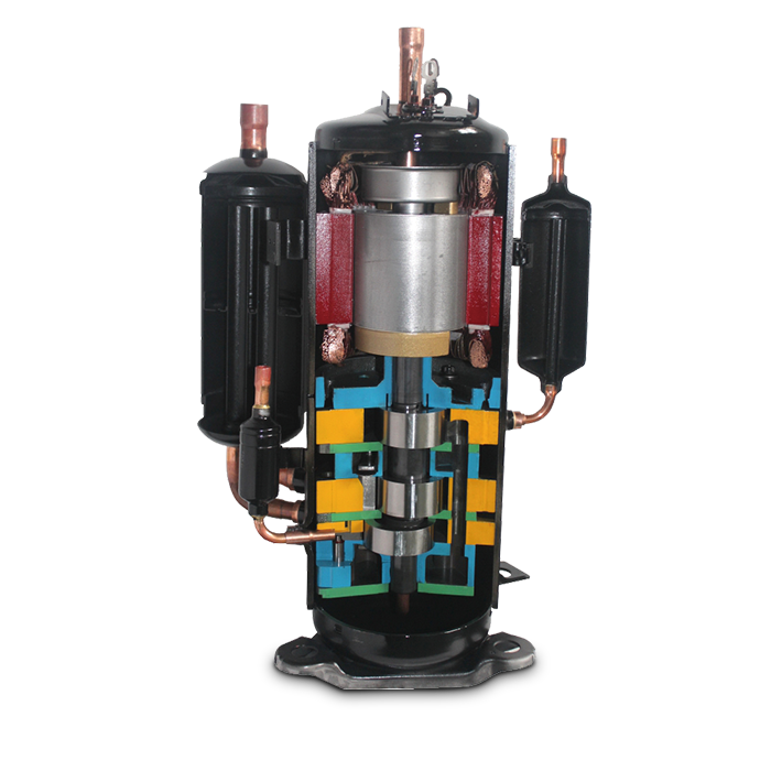 三缸双级变容积比压缩机可实现两 种不同容积比的双级压缩,可降低单个气缸的压缩比,减小了 泄漏量,提高了压缩机的容积效率,与单级压缩系统相比,双 级增焓压缩系统具有能力高,能效高和可靠性高的优势,使用 在家用热泵空调,多联式热泵空调,户用冷水热泵机组等多种 类型的热泵产品中 91香蕉短视频。